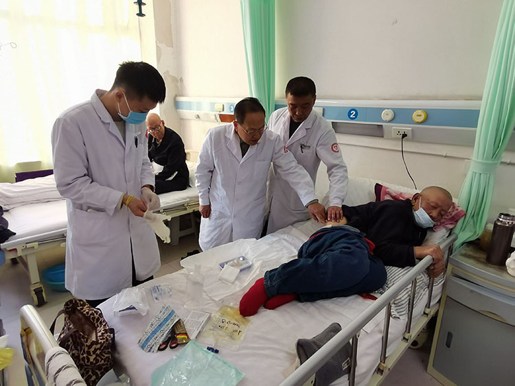 12月11日,應(yīng)同煤二醫(yī)院邀請,《中國燒傷創(chuàng)瘍雜志》常務(wù)編委、燒傷創(chuàng)瘍再生醫(yī)療技術(shù)臨床專家趙瑞慶教授前往會診一例四級糖尿病足潰瘍患者,并建議可行手術(shù)治療。趙教授隨后查看了該院正在接受再生醫(yī)療技術(shù)治療的六例慢創(chuàng)住院患者,并就后續(xù)治療提出指導(dǎo)建議。