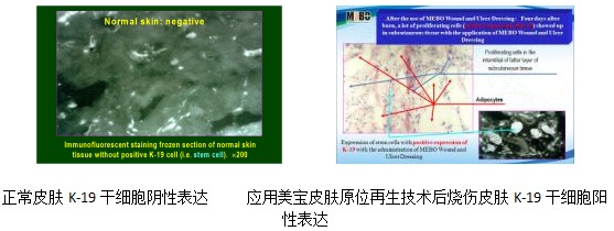 3月14日上午11點(diǎn),在會(huì)議的最后一天,大會(huì)組委會(huì)特別安排了一場干細(xì)胞為主題的演講。同樣是來自中國燒傷創(chuàng)瘍科技中心臨床部主任、北京榮祥再生醫(yī)學(xué)研究所副所長、北京中西醫(yī)結(jié)合學(xué)會(huì)燒傷專業(yè)委員會(huì)副主任委員、中國燒傷創(chuàng)瘍雜志社副社長的陳永翀教授以‘K-19干細(xì)胞臨床應(yīng)用研究原位再生三度燒傷皮膚’(The Clinical Application Research of K-19 Stem Cells to Regenerate Full-thickness Burnt Skin in situ)為題介紹了,皮膚原位再生的原理是通過再生物質(zhì)使?jié)撃芨杉?xì)胞轉(zhuǎn)變成干細(xì)胞原位再生皮膚組織器官,并且通過免疫熒光法標(biāo)記出K-19型干細(xì)胞表達(dá)信息。