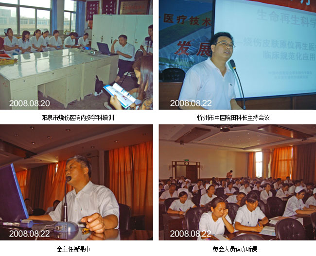 2008年8月22日,金黨軍主任和靳偉經(jīng)理又在忻州市中醫(yī)院對(duì)全院的臨床醫(yī)護(hù)人員做了“燒傷皮膚原位再生醫(yī)療技術(shù)學(xué)習(xí)培訓(xùn)”,參會(huì)人員140多人。忻州市中醫(yī)院是綜合實(shí)力較強(qiáng)的三級(jí)乙等醫(yī)院,該院以前只在小面積病人方面應(yīng)用燒傷皮膚原位再生醫(yī)療技術(shù),經(jīng)過(guò)這次培訓(xùn),該院醫(yī)教科田科長(zhǎng)說(shuō),爭(zhēng)取在以后工作中能夠多次合作,在條件允許時(shí)候我們把燒傷和創(chuàng)瘍、創(chuàng)傷、潰瘍病人單獨(dú)成立一個(gè)特色專科。會(huì)后金黨軍主任對(duì)外科、皮膚醫(yī)護(hù)人員提出的問(wèn)題做了詳細(xì)的講解,大家表示通過(guò)這次講座受益匪淺,增長(zhǎng)了不少新的知識(shí),真正了解了我國(guó)皮膚原位再生醫(yī)學(xué)的發(fā)展,感謝徐榮祥教授研究創(chuàng)立了造?;颊叩暮眉夹g(shù),感謝中西醫(yī)結(jié)合學(xué)會(huì)燒傷專業(yè)委員會(huì)金主任帶來(lái)的新知識(shí)。并希望中國(guó)中西醫(yī)學(xué)會(huì)燒傷專業(yè)委員會(huì)和北京美寶燒傷創(chuàng)瘍研究所繼續(xù)給予支持幫助,進(jìn)一步加強(qiáng)合作。通過(guò)講座,學(xué)習(xí)交流等形式把徐榮祥教授創(chuàng)立的生命再生科學(xué)及皮膚原位再生修復(fù)理論融會(huì)貫通傳播到每個(gè)醫(yī)護(hù)人員中,從思想上,概念上認(rèn)識(shí)再生醫(yī)療技術(shù)的創(chuàng)立與發(fā)展,用最適宜基層應(yīng)用的技術(shù)造福廣大燒傷、創(chuàng)瘍,創(chuàng)傷、潰瘍等多發(fā)病常見病患者。促進(jìn)中西醫(yī)臨床結(jié)合的更快發(fā)展。