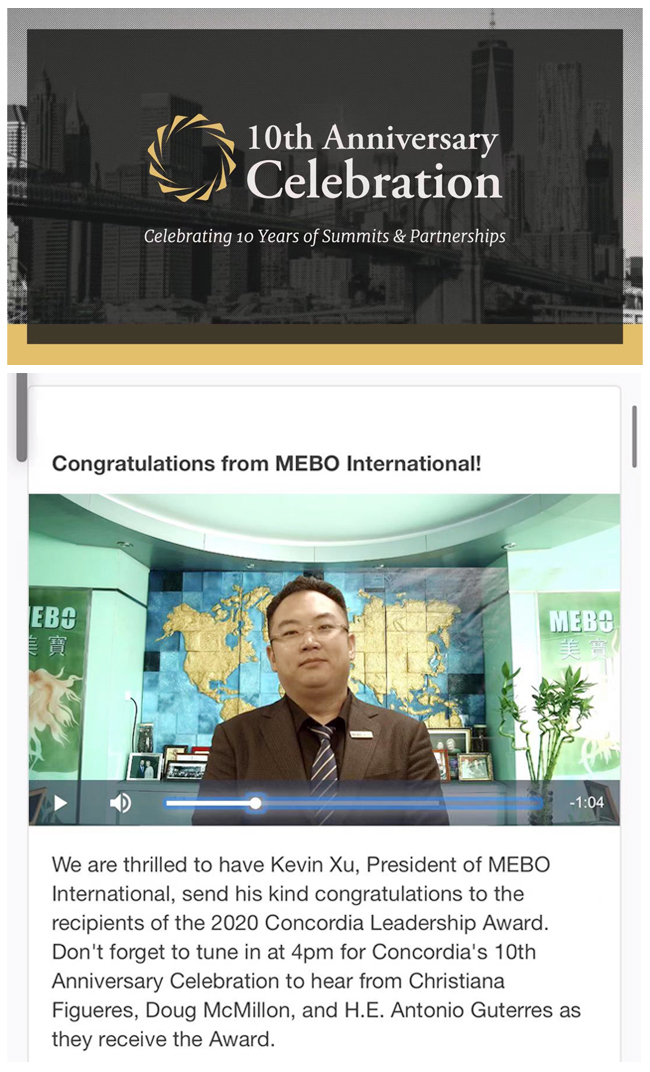 美寶集團(tuán)董事局主席徐鵬出席Concordia十年慶典并應(yīng)邀為聯(lián)合國秘書長古特雷斯等人致賀詞