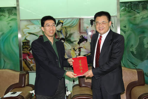 更加令人振奮的是,針對2010年的各項工作和收獲,美寶國際市場集團首次以每個人的業(yè)績和貢獻,對相關(guān)人員進行了表彰和獎勵!并且由徐總親自為各位優(yōu)秀的獲獎員工頒發(fā)了美寶國際市場史上的第一份榮譽證書并合影留念!
