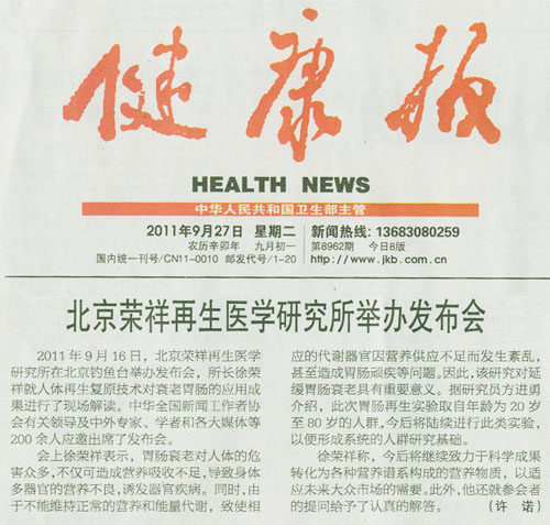 健康報(bào):北京榮祥再生醫(yī)學(xué)所舉辦發(fā)布會(huì)