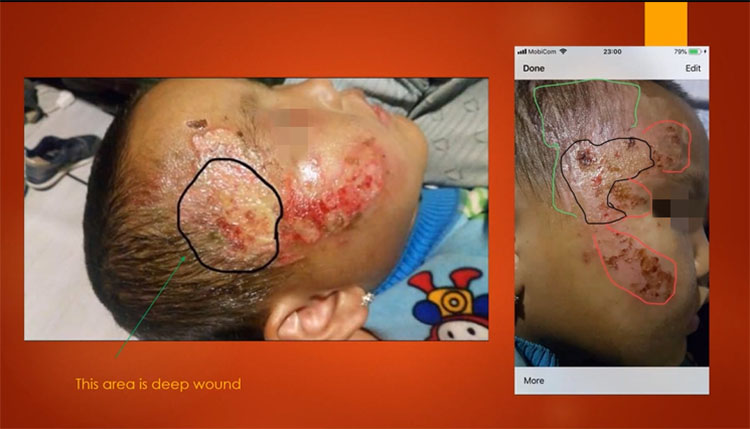 來自蒙古國家創(chuàng)傷與骨科研究中心的Tuya Kh醫(yī)生的演講題目為《濕潤燒傷膏治療創(chuàng)面的臨床效果》(Clinical Efficacy of Moist Exposed Burn Ointment in the Treatment of Wound)。在演講中,Tuya Kh醫(yī)生分享了她針對膿腫、燒傷、糖尿病足等的治療經(jīng)驗。特別值得一提的是,她分享了一名4歲患兒因疫情原因而接受醫(yī)生線上指導(dǎo),自行在家中使用濕潤燒傷膏治療的情況。該患兒的創(chuàng)面愈合良好,未產(chǎn)生任何瘢痕,充分體現(xiàn)了濕潤燒傷膏換藥的易操作性。