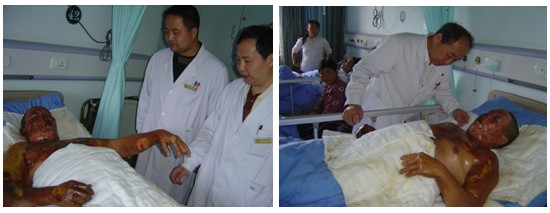 會(huì)議組長(zhǎng)大家參觀走訪了四川災(zāi)區(qū)醫(yī)院,所到之處都能聽(tīng)到、看到徐榮祥教授帶領(lǐng)抗震救災(zāi)創(chuàng)瘍專家醫(yī)療隊(duì),以一名普通醫(yī)生身份救治傷員得事跡。德陽(yáng)市人民醫(yī)院燒傷科病房中已經(jīng)人滿為患,走道中都是簡(jiǎn)易病床,一位而從浙江轉(zhuǎn)來(lái)的10歲小傷員,當(dāng)?shù)匾獮樗刂?,她母親聽(tīng)說(shuō)德陽(yáng)市人民醫(yī)院可以用再生技術(shù)保住下肢就來(lái)到醫(yī)院求治,在李永忠主任精心治療下,應(yīng)用MEBO和“美寶創(chuàng)面速愈貼”成功救治保住了肢體。