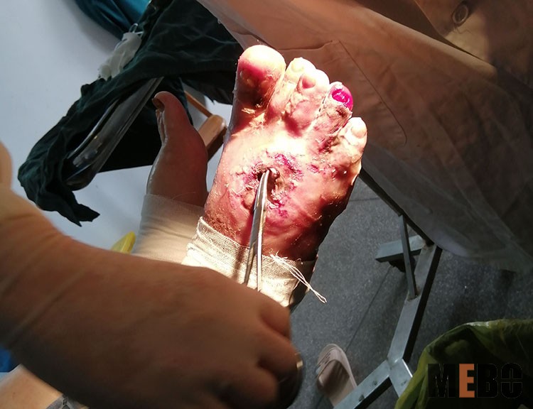 9月15日,受安徽亳州市中醫(yī)院瘡瘍科邀請(qǐng),北京榮祥再生醫(yī)學(xué)研究所副所長(zhǎng)、中國(guó)中西醫(yī)結(jié)合學(xué)會(huì)燒傷專業(yè)委員會(huì)常務(wù)委員、《燒傷創(chuàng)瘍雜志》副總編輯、應(yīng)用燒傷創(chuàng)瘍?cè)偕t(yī)療技術(shù)治療糖尿病足領(lǐng)域?qū)<?、研究員王洪生教授到科室會(huì)診一個(gè)大面積糖尿病足患者,并為一個(gè)壞死性筋膜炎患者進(jìn)行了手術(shù),會(huì)診后得到全體醫(yī)護(hù)人員以及患者家屬的一致好評(píng)!