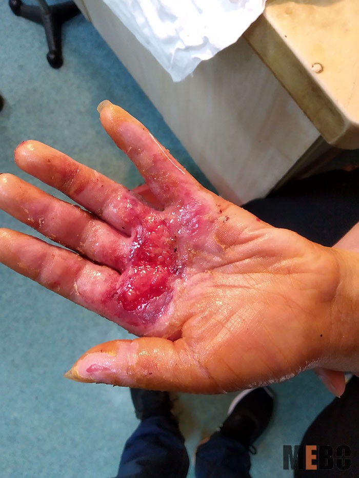5月8日,再生醫(yī)學知名專家、《中國燒傷創(chuàng)瘍雜志社》常務編委趙瑞慶主任    來到江蘇常熟市莫城衛(wèi)生院,檢視左手熱壓傷女工,指導醫(yī)生規(guī)范換藥?;颊呒凹覍偃f分感激趙教授和治療醫(yī)生丁主任。丁主任表示,他又學到了新的換藥操作技法,未來將一如既往地堅持再生技術(shù)的應用。