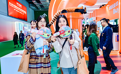 進(jìn)博會(huì)展區(qū),已成為舊金山動(dòng)物園明星的以美寶冠名的小熊貓“LITTLE MEBO”,成為了觀眾們爭相打卡的熱門形象,為整個(gè)展區(qū)增添了不少樂趣。