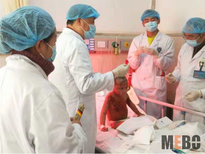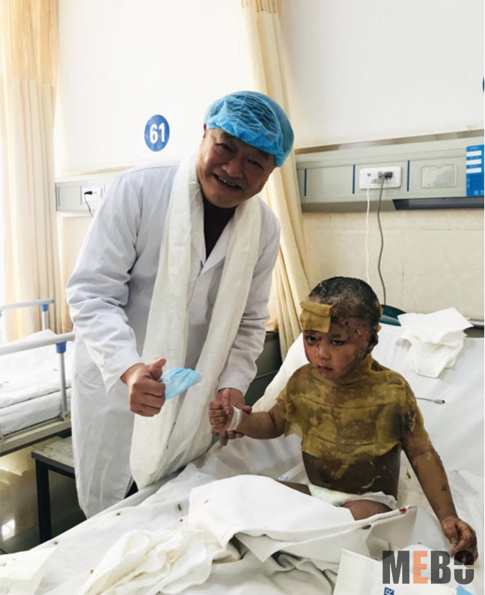 為了更好的配合付教授換藥,嘎登小朋友一直保持固定姿勢,一動不動。在給小嘎登換藥的過程中,小嘎登全程沒有喊痛、沒有留一滴眼淚。為了表示對付教授的感謝,嘎登小朋友還給付教授豎起了大拇指,為付教授及再生醫(yī)療技術點贊。
