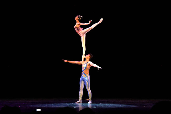 李夢(mèng)楠和龍?jiān)苽b肩上芭蕾表演