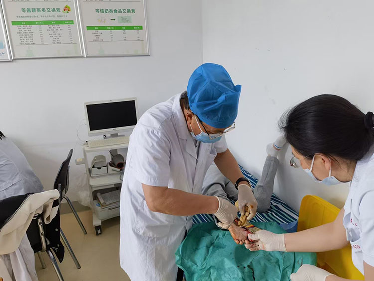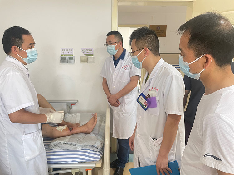 2023年5月30日,重慶三峽醫(yī)藥高等??茖W(xué)校附屬人民醫(yī)院賴登祥教授創(chuàng)面修復(fù)團(tuán)隊(duì)在重慶市萬州區(qū)武陵鎮(zhèn)中心衛(wèi)生院,進(jìn)行再生醫(yī)療技術(shù)巡講活動(dòng),隨后對(duì)一位慢創(chuàng)患者進(jìn)會(huì)診治療。