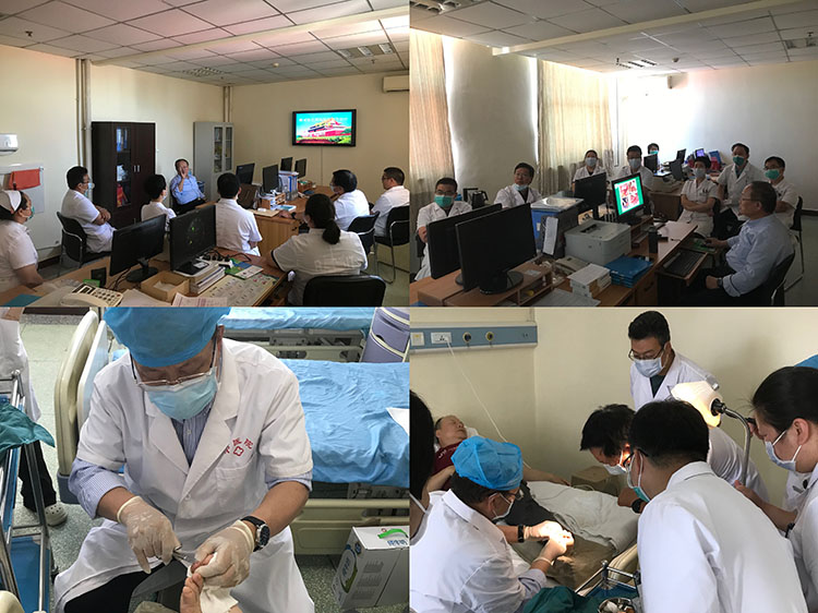 6月8日,北京榮祥再生醫(yī)學(xué)研究所副所長、《中國燒傷創(chuàng)瘍雜志》編委金黨軍以及林文忠來到貴溪市人民醫(yī)院,與方建喜、護(hù)士等對(duì)一例慢性潰瘍病人進(jìn)行巡診治療和座談。