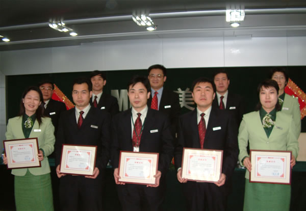 2月7日上午市場(chǎng)板塊會(huì)議進(jìn)行表彰工作,由陳寶琪董事宣讀了集團(tuán)董事局關(guān)于授予李德喜等五位同志為“美寶紳士”榮譽(yù)稱號(hào)的決定。這是集團(tuán)實(shí)行“美寶紳士”年度評(píng)審制度后的首次任命。李德喜、李春鳳、王洪生、汪波、彭韶軍等五位同志由董事局主席徐榮祥教授頒發(fā)獎(jiǎng)牌。徐總號(hào)召大家向美寶紳士學(xué)習(xí),弘揚(yáng)汪波、李春鳳的精神,今后各系統(tǒng)都要實(shí)行紳士年度評(píng)審制,為集團(tuán)的發(fā)展作出突出貢獻(xiàn)的人員是集團(tuán)全體員工的榜樣。
