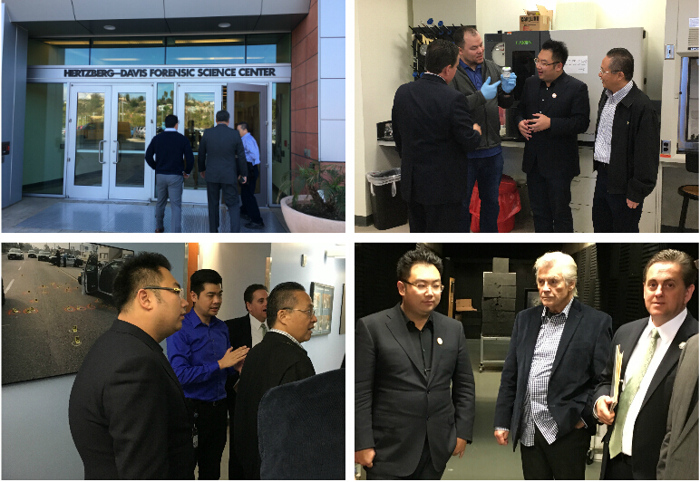 午餐后,戈麥斯校長親自駕駛校園電瓶車帶徐鵬總裁和來賓來到美國除聯(lián)邦調(diào)查局以外最大的法醫(yī)學(xué)中心-由洛杉磯郡警和市警合作的赫茲伯格-戴維斯法醫(yī)學(xué)中心參觀。該中心的毒理實(shí)驗(yàn)室主任和器械主管警官全程引領(lǐng)和講解,該中心是美劇CSI(犯罪現(xiàn)場調(diào)查)鑒證的技術(shù)支持。