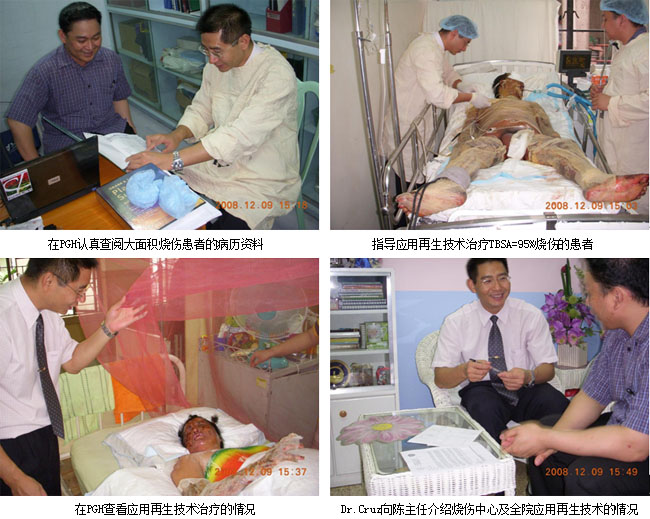 3、12月10日上午,應(yīng)邀到馬尼拉市東大街醫(yī)院(政府醫(yī)院,600病床)燒傷中心進(jìn)行技術(shù)交流和培訓(xùn),培訓(xùn)后該院馬上采用皮膚再生技術(shù)治療住院的燒傷患者。