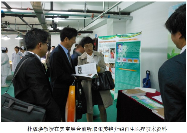 配合會(huì)議主題學(xué)術(shù)報(bào)告,北京片區(qū)專門在報(bào)告廳的門口布置了人類進(jìn)入再生生命世界主題展臺(tái),為參會(huì)的臨床醫(yī)生提供了專家咨詢交流的平臺(tái),并贈(zèng)閱學(xué)習(xí)資料,大家對(duì)《中國(guó)燒傷創(chuàng)瘍雜志》、《燒傷皮膚再生醫(yī)療技術(shù)臨床手冊(cè)》、《再生醫(yī)療技術(shù)臨床應(yīng)用指導(dǎo)叢書(shū)》(褥瘡、糖尿病足、肛腸疾病、皮膚病、難愈創(chuàng)面等分冊(cè)),受到參會(huì)醫(yī)生的歡迎,韓國(guó)的樸成煥教授饒有興趣的到展臺(tái)前進(jìn)行咨詢,他認(rèn)真聽(tīng)取肖摩教授講解再生醫(yī)療技術(shù)臨床應(yīng)用規(guī)范和療效的情況之后,感嘆美寶的神奇療效,要結(jié)合整形美容專業(yè)應(yīng)用于臨床。