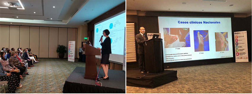 培訓(xùn)的議題主要分為兩大部分:一、再生醫(yī)療技術(shù)的全球發(fā)展,二、再生醫(yī)療技術(shù)在拉美地區(qū)的現(xiàn)階段發(fā)展。培訓(xùn)伊始,首先由國際再生醫(yī)學(xué)與創(chuàng)面修復(fù)學(xué)會北京辦公室主任徐巍巍進行演講。她首先系統(tǒng)地介紹了再生醫(yī)療技術(shù)的發(fā)展歷史及諸項專利,為參會者展現(xiàn)出再生醫(yī)療技術(shù)的強大科研背景與科學(xué)實力。接著,她又著重分析了再生醫(yī)療技術(shù)在提供生理性濕潤環(huán)境、緩解疼痛、控制炎癥、預(yù)防感染、改善瘢痕、液化壞死組織及促進皮膚原位再生等方面的作用機制,清晰的梳理了再生醫(yī)療技術(shù)在創(chuàng)面治療領(lǐng)域的巨大優(yōu)勢。最后,她分享了近年來在全球開展的多項最新臨床研究結(jié)果,以及多個復(fù)雜病例的分享,直觀地呈現(xiàn)出再生醫(yī)療技術(shù)的顯著治療效果。