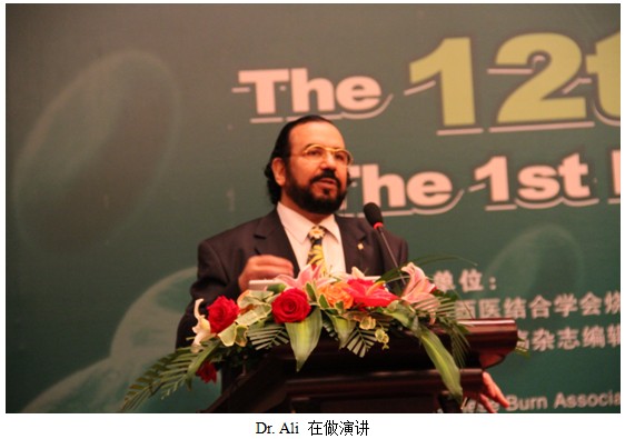 第一位演講的是來自阿聯(lián)酋迪拜的Ali Al-Numairy 醫(yī)生,他是海灣??漆t(yī)院整形外科主任,國際外科醫(yī)師協(xié)會副主席(阿聯(lián)酋地區(qū)主席)20年再生醫(yī)療技術(shù)使用經(jīng)驗是再生醫(yī)療技術(shù)的忠實粉絲。 他演講的題目是再生醫(yī)療技術(shù)在創(chuàng)面愈合中的作用。Ali 教授從創(chuàng)面愈合的機理,疤痕形成的原因引出了創(chuàng)面愈合所需的理想條件與環(huán)境,進而指出再生醫(yī)療技術(shù)是唯一個可以滿足創(chuàng)面生理愈合所有條件的技術(shù),同時跟強調(diào)這項技術(shù)正符合了21世紀燒傷治療的最新理念既:燒傷的治療不僅僅局限于挽救患者生命,更重要的是如何更有效的降低燒傷并發(fā)癥帶來的心理負擔。接著他又詳細全面的介紹了再生醫(yī)療技術(shù)作用機理,以及常用換藥方法.根據(jù)他20多年的臨床使用經(jīng)驗,再生醫(yī)療技術(shù)適應(yīng)癥包括:各類型、程度及階段的燒傷,紫外線損傷;各種類型創(chuàng)傷以及激光術(shù)后創(chuàng)面等等。隨后Dr. Ali 通過大量的病例圖片生動形象的展示了 再生醫(yī)療技術(shù)在燒傷、創(chuàng)瘍、整形美容等多種創(chuàng)面的應(yīng)用。