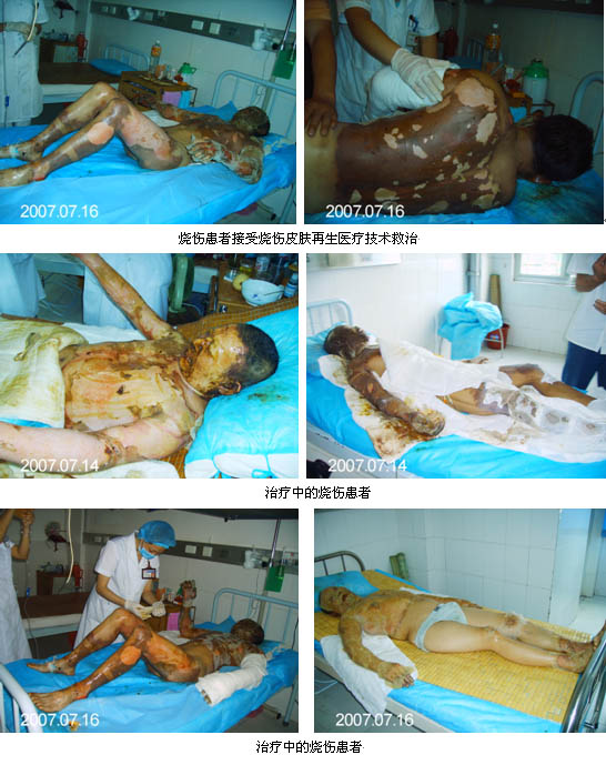 瀏陽市中醫(yī)醫(yī)院燒傷科是國家中醫(yī)藥管理局、瀏陽市中醫(yī)醫(yī)院的重點科室。眾所周知,瀏陽是聞名世界的花炮之鄉(xiāng),特殊的經(jīng)濟發(fā)展環(huán)境,使當(dāng)?shù)丶膊〉陌l(fā)生呈現(xiàn)出特殊性,即燒傷患者多發(fā)。如何解決好燒傷患者的救治問題,最大限度的降低燒傷患者的死亡率和致殘率。在瀏陽不僅僅是患者個人的問題,也是涉及到社會和諧穩(wěn)定的大問題。瀏陽市中醫(yī)醫(yī)院以為百姓治病、為政府解憂作為自己的責(zé)任,于2002年開始引進并成功應(yīng)用燒傷皮膚再生醫(yī)療技術(shù)(燒傷濕性醫(yī)療技術(shù)),實現(xiàn)了療效卓越、費用低廉的效果。醫(yī)院在保證療效卓越的同時,追求低廉的治療費用,按照“崇德、求精、濟世、鼎新”的院訓(xùn)要求,依據(jù)實際情況盡量減免病人的住院費用,甚至捐款贈藥,使全心全意為病人服務(wù)的理念落到實處。瀏陽市古港鎮(zhèn)大面積燒傷患者羅某,家中一貧如洗,其妻子又剛剛懷孕3個月,羅某多次想跳樓自殺,該院燒傷科護理人員不但耐心細致的勸說和無微不至的關(guān)懷,還為其免去住院的所有費用,還贈送了敷料、彈力繃帶等藥品及醫(yī)用品,使羅某又重新燃起對生活的信心和希望。像羅某這樣的特困病人,該科均給予減免費用,每年科內(nèi)對危重、困難的病人減免費用達數(shù)萬元。醫(yī)院燒傷科高超技術(shù)、仁愛之心獲得了病人和家屬的稱贊,在瀏陽市及周邊地區(qū)如江西萍鄉(xiāng)、萬載和湖南醴陵、長沙、平江等地贏得良好聲譽。