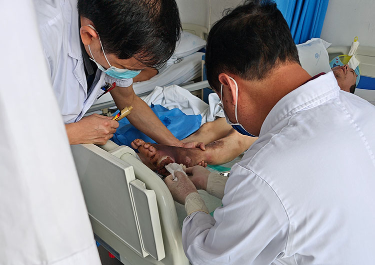 5月27日,《中國燒傷創(chuàng)瘍雜志》常務(wù)編委、燒傷創(chuàng)瘍再生醫(yī)療技術(shù)臨床專家趙瑞慶,應(yīng)南京南鋼醫(yī)院(南京德馭康養(yǎng)中心)邀請,在外科病區(qū)會(huì)診了五例慢創(chuàng)患者(糖足2例、壓瘡2例、下肢脈管炎1例)。在討論環(huán)節(jié)分別釆取一病一策的治療方法,最后將最新治療糖尿病足改善血液循環(huán)的方法傳授于當(dāng)?shù)蒯t(yī)務(wù)人員,大家表示受益匪淺。